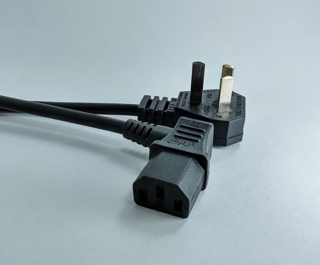 Cable interlock bipolar con toma de tierra, moderno, ergonómico y seguro, con contactos de latón macizo niquelados, ideal para pequeños electrodomésticos móviles de uso cotidiano de hasta 10A.